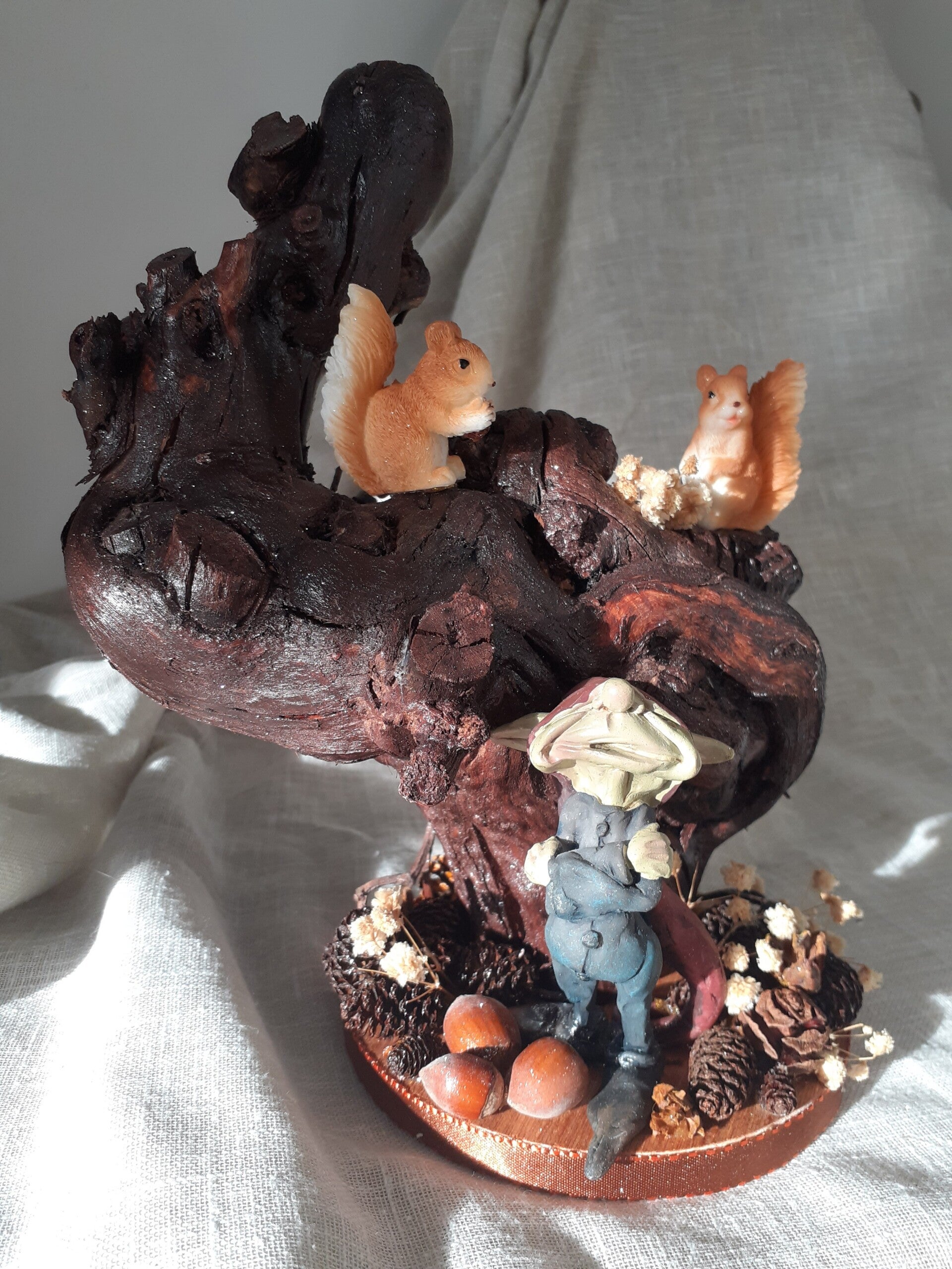 Chaque pièce est unique ,chantournée manuellement, faite à partir de bois de récupération et agrémentée de fruits des bois , d'épices ou de fleurs séchées ,pour une décoration originale et écologique.